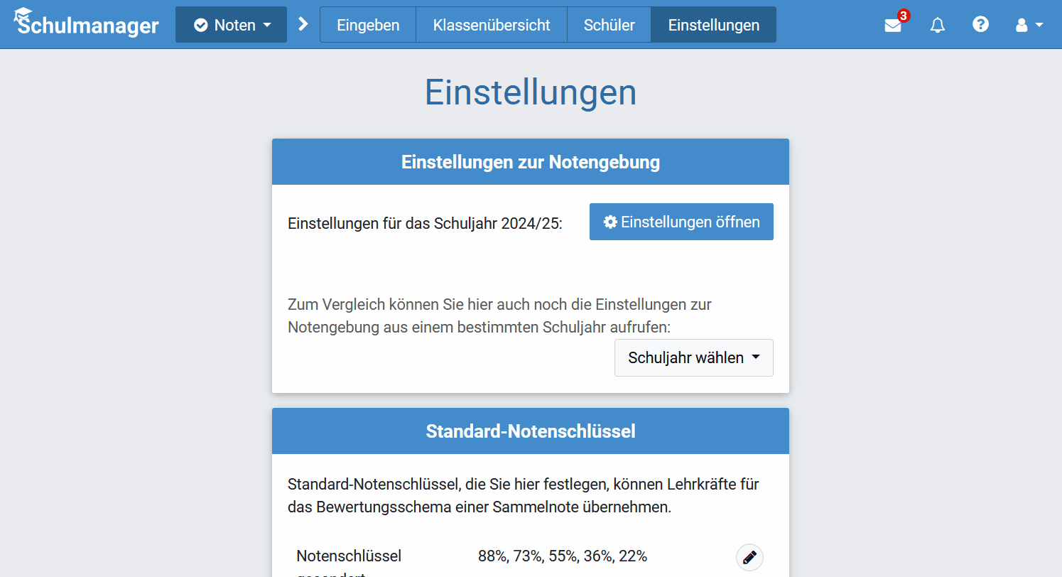 Wenn Sie auch unser Modul Zeugnisse nutzen: Klassenlehrkräfte und Administratoren können in der Schüler-Ansicht im Modul Zeugnisse auch nach Notenschluss weiterhin Noten erfassen oder ändern. Im Reiter "Unterrichte" sind keine Änderungen mehr möglich.